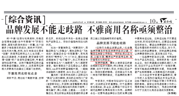 《福州日?qǐng)?bào)》:品牌發(fā)展不能走歧路 不雅商用名稱亟待整治