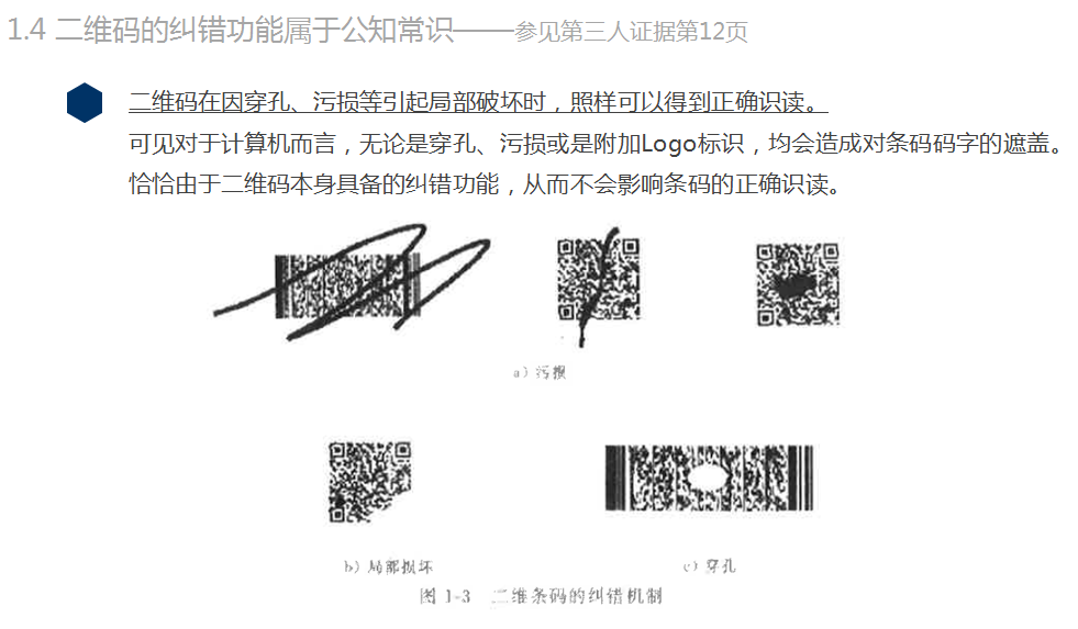 最后,關(guān)于二維碼的成功,以至于成為當(dāng)今商業(yè)社會(huì)最為重要的流量入口,這一方面要?dú)w功于二維碼本身加入了Reed-Solomon糾錯(cuò)算法,為其廣泛傳播奠定了基礎(chǔ);另一方面則要?dú)w功于國家的高度重視,以及騰訊、阿里等互聯(lián)網(wǎng)科技公司所做出的不懈努力。然而,這與涉案專利并無關(guān)聯(lián)。