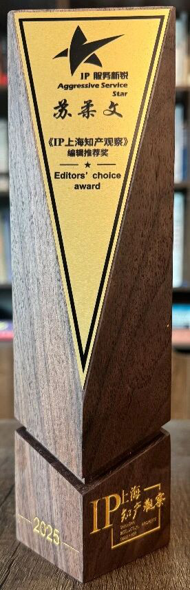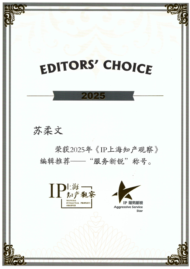 集佳上海分所蘇柔文律師憑借優(yōu)秀的專業(yè)素養(yǎng)與突出的業(yè)務(wù)表現(xiàn)獲評(píng)“2025知識(shí)產(chǎn)權(quán)服務(wù)新銳”。